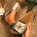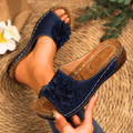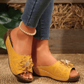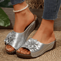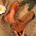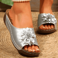 Crafted with a chic, durable leather upper and a beautifully detailed floral design, these sandals bring a touch of charm to every step. The wedge-shaped sole offers subtle elevation and all-day comfort, making them a must-have essential for spring and summer.