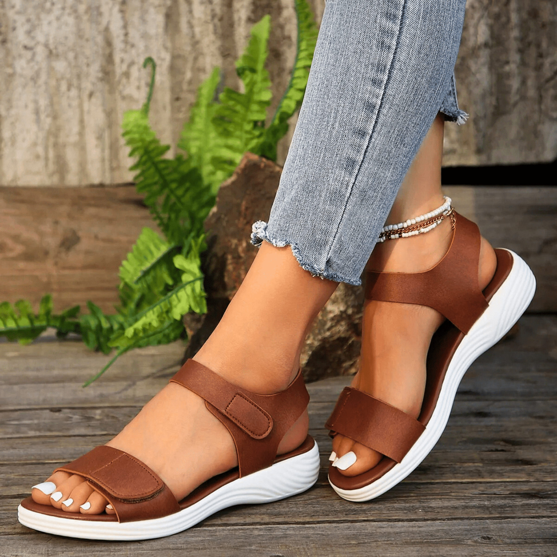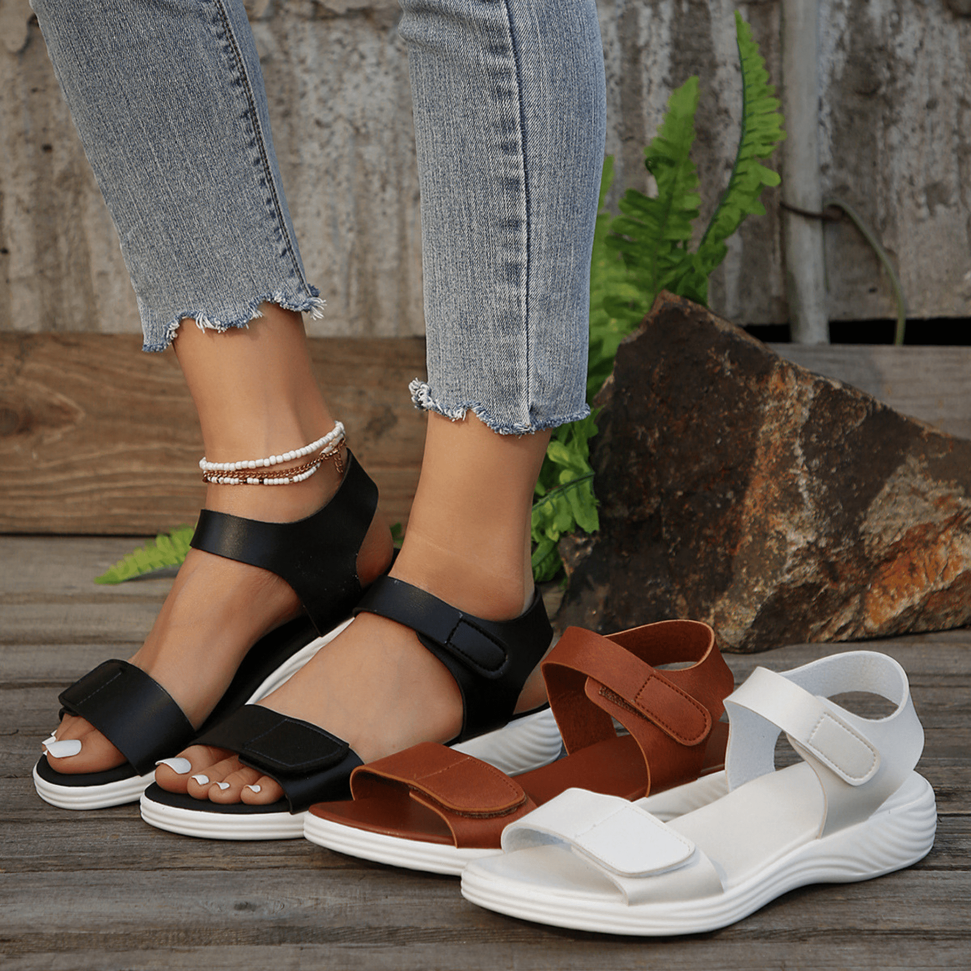 Designed with chic leather straps and a sleek velcro closure for a secure, adjustable fit. The ultra-soft cushioned insole molds to your feet, while the flexible outsole ensures natural movement, making them perfect for everyday wear.