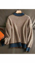 Featuring a charming houndstooth-inspired pattern in two versatile shades, this sweater is perfect for adding a pop of texture to your wardrobe. Designed as a one-size garment, it offers a relaxed fit that complements all body types, ensuring effortless style and comfort. The contrasting ribbed cuffs, neckline, and hem provide a striking finish, making it an ideal choice for casual outings or layering in cooler weather. Embrace the warmth and versatility of the Natalie Knit Sweater—your new go-to for chic, everyday wear.
