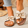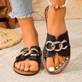 Featuring a bold gold chain accent and a textured leather finish for a luxe, standout look. Designed with a cushioned sole, wide-fit comfort, and a wear-resistant outsole, they offer all-day ease from casual strolls to elevated evenings.