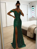 Zaprada long dress v-neck shiny sequin split side split shoulders sleeveless elegant woman evening ceremony