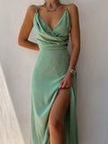 Discover this elegant dress, designed for special occasions including evening parties and formal dinners. Its solid color design and flowing silhouette create a timeless fashion statement.