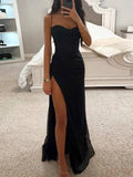 The spaghetti straps and tube top highlight feminine curves, while the sleeveless cut adds a fresh and sensual touch. The side slit hem provides fluidity and subtle charm with every movement. The monochromatic design, simple yet sophisticated, complements all skin tones and personalities.