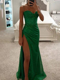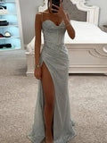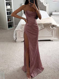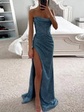 Zaprada long fitted dress with side slit, strapless bodice with thin straps, sleeveless, elegant evening dress for women