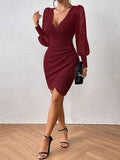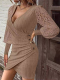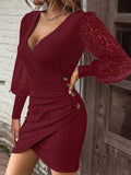Zaprada mid-length fitted lace dress with V-neck button closure and long sleeves for women, casual cocktail style